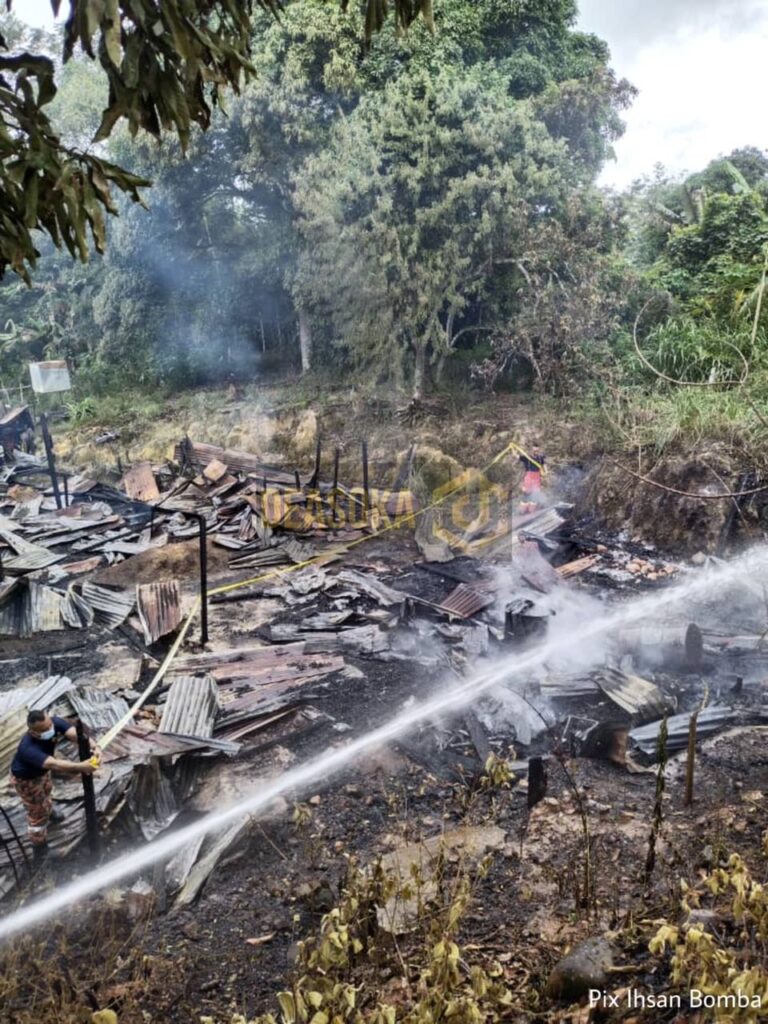 Keningau: Tiga blok rumah kongsi yang menempatkan 12 rumah pekerja sebuah kilang kayu musnah terbakar dalam kejadian di Jalan Patikang, di sini, hari ini.
