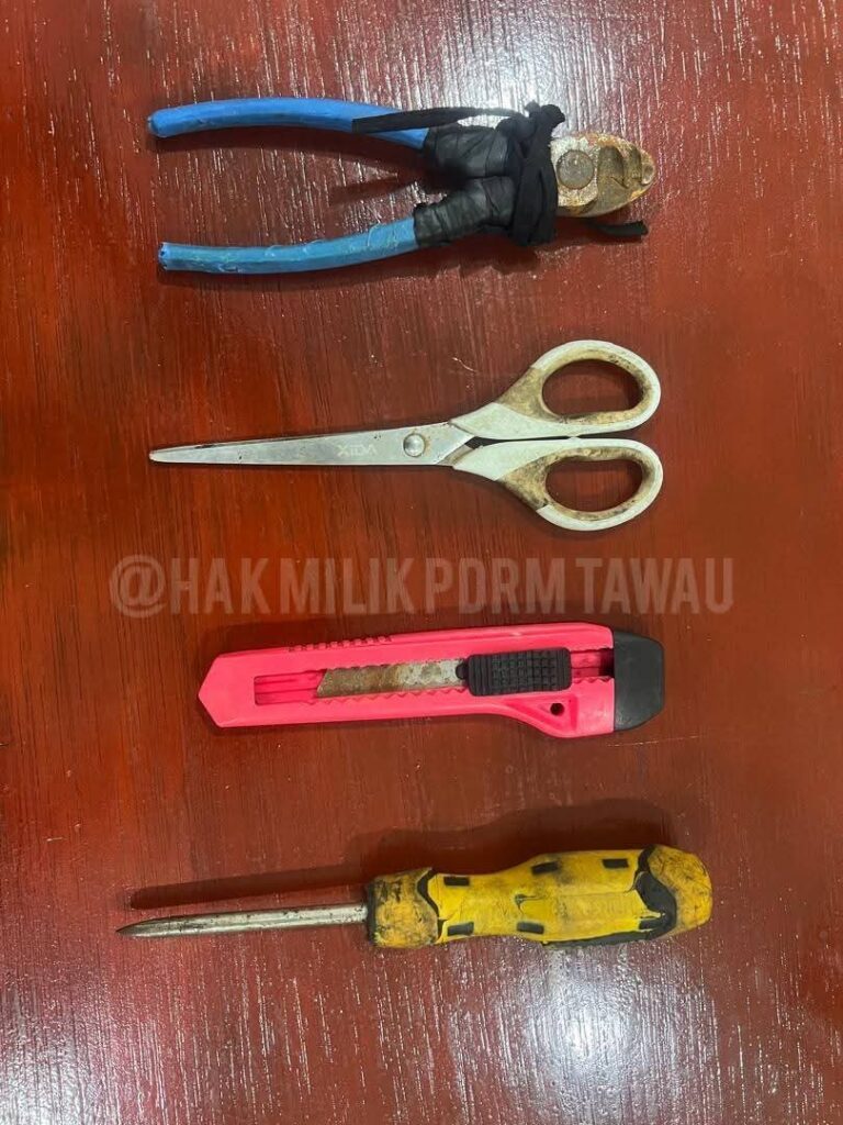 Tambahnya, pemeriksaan lanjut ke atas suspek menemui beberapa barangan berbahaya dipercayai digunakan semasa kejadian termasuk pemutar skru, bilah pisau pemotong kertas, bilah gunting serta sebatang besi, yang kemudiannya dirampas oleh pihak polis.